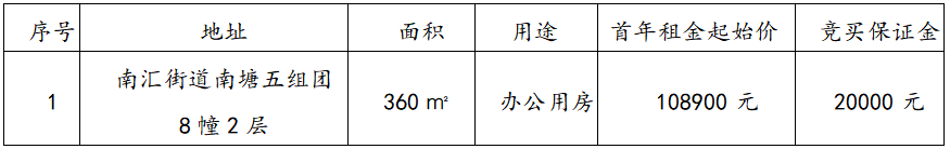 温州市鹿城区南汇街道桥儿头社区一宗房产三年租赁权竞价公告(竞价时间:2024年11月21日)