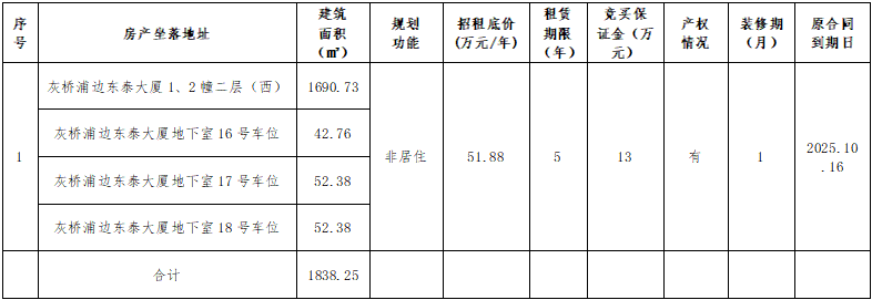 温州市鹿城区灰桥浦边东泰大厦1、2幢二层(西)商业用房及配套车位整体五年租赁权交易公告(交易时间:2025年9月29日)