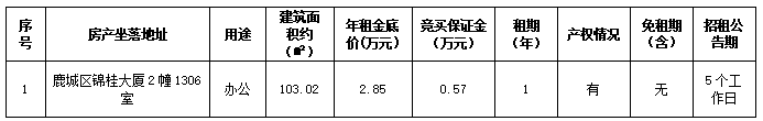 温州市鹿城区锦桂大厦2幢1306室办公用房一年租赁权(第二次)交易公告(交易时间:2025年10月14日)