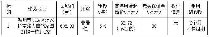 温州市鹿城区汤家桥南路大自然家园Z1幢一楼101室房产5+3年租赁权竞价公告(竞价时间:2025年10月15日)