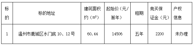 温州市鹿城区水门底10、12号五年租赁权竞价公告(竞价时间:2025年11月3日)