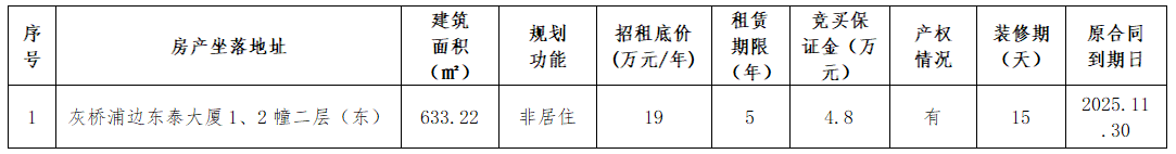 温州市鹿城区灰桥浦边东泰大厦1、2幢二层(东)商业用房 五年租赁权交易公告(交易时间:2025年10月23日)
