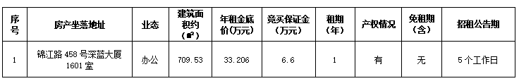 温州市鹿城区锦江路458号深蓝大厦1601室办公用房一年租赁权(第二次)交易公告(交易时间:2025年10月29日)