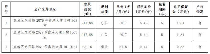 鑫港大厦商业、办公用房租赁权交易公告(交易时间:2025年11月5日)