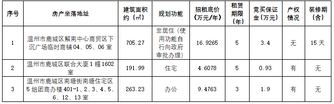 本网站于于2025年9月30日发布了《温州市鹿城区解南中心商贸区下沉广场临时商铺 04、05、06 室等3宗房产租赁权交易公告》,标的情况: