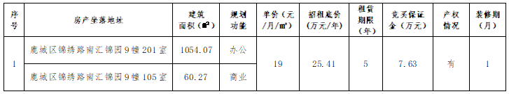 鹿城区锦绣路南汇锦园9幢105室、9幢201室商业、办公用房租赁权交易公告(交易时间:2025年10月31日)