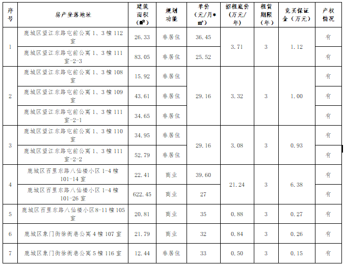 鹿城区屯前公寓、八仙楼小区、徐衙巷公寓商业、非居住用房租赁权交易公告(拍卖时间:2025年11月5日)