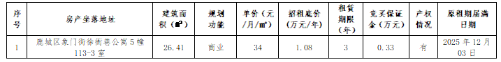 鹿城区徐衙巷公寓商业用房租赁权交易公告(拍卖时间:2025年11月5日)