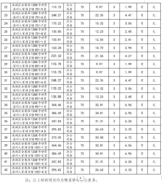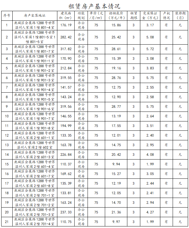 温州市鹿城区世界温州人家园1幢801-4室等42宗办公用房三年租赁权交易公告(交易时间:2025年11月12日)