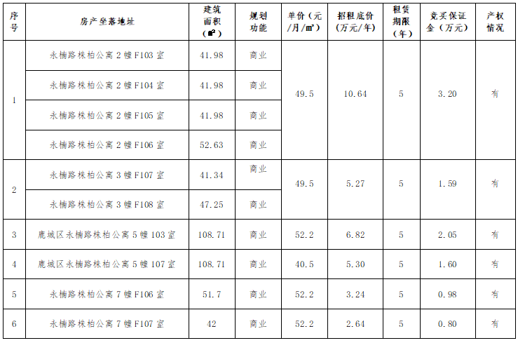 株柏公寓商业用房租赁权交易公告(拍卖时间:2025年11月24日)