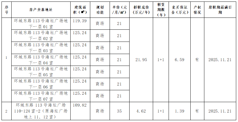 环城东路113号海坛广场地下一层01室等2宗商场用房租赁权交易公告(拍卖时间:2025年11月21日)