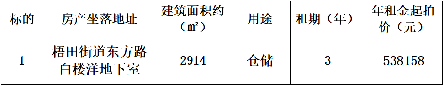 梧田街道东方路白楼洋地下室三年租赁权竞价公告(竞价时间:2022年9月1日)