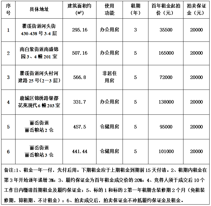 受委托,本公司对温州市瓯海区粮食收储有限公司6宗资产租赁权进行公开拍卖,有关事项公告如下:
