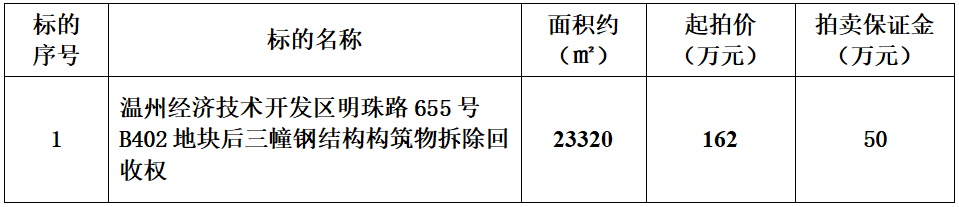 温州经济技术开发区明珠路655号B402地块后三幢钢结构构筑物拆除回收权网络拍卖公告(网拍时间:2023年4月28日)